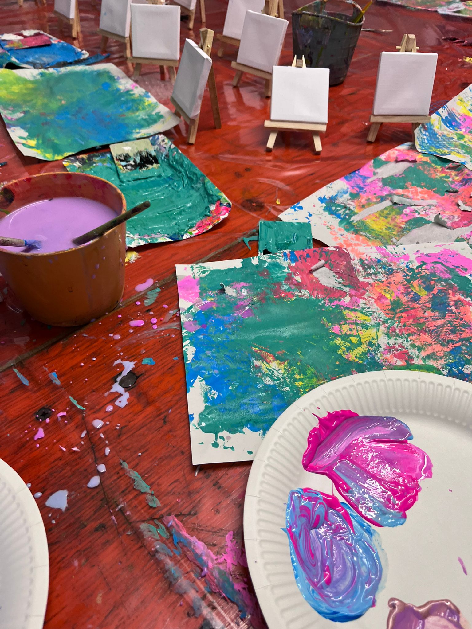 - Kreativphase: Die Kinder gestalten unter Anleitung ihr eigenes Kunstwerk (z.B. Leinwandmalerei, Collagen oder Bastelarbeiten).